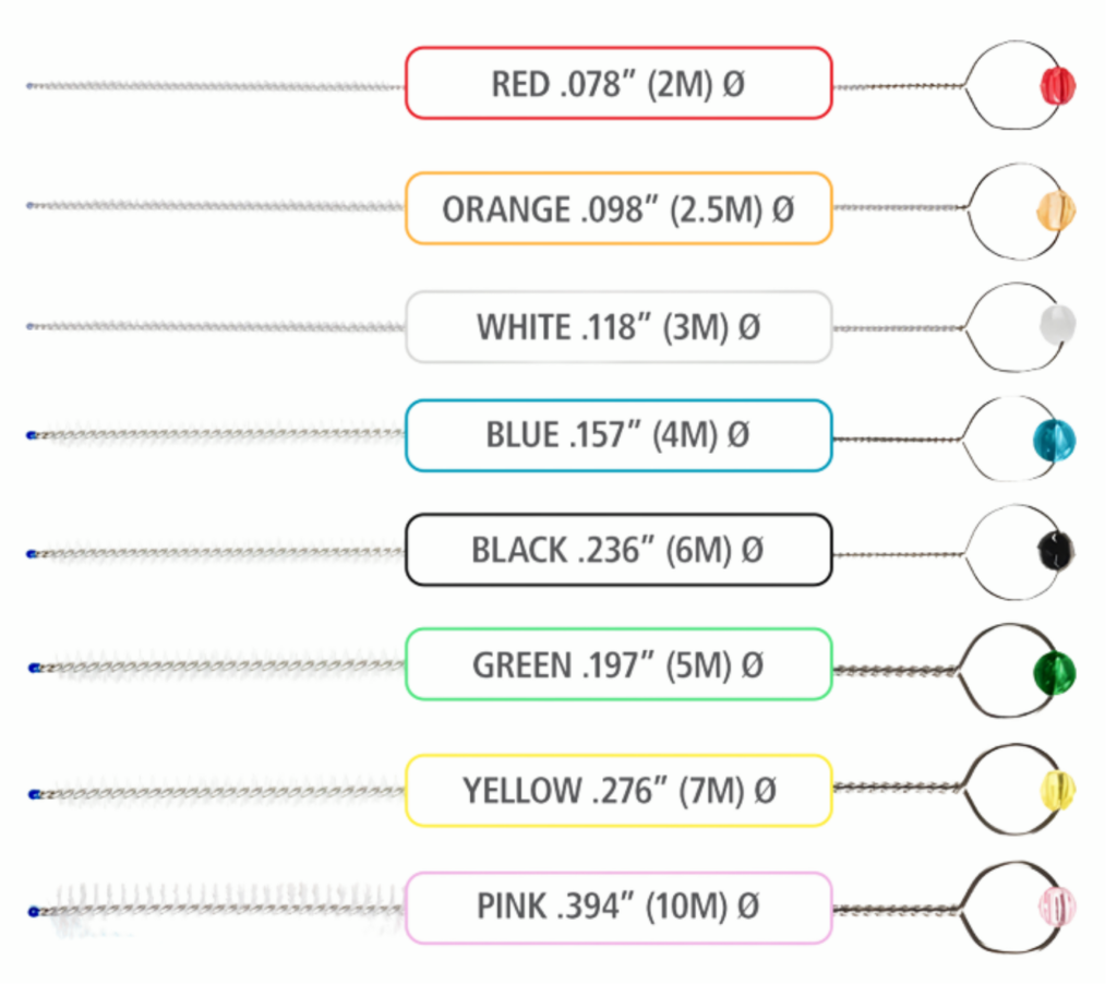 Each BrightBrush features a color-coded bead that instantly indicates bristle diameter and size. This allows staff to quickly select the correct brush for the right instrument, reducing guesswork and minimizing delays.